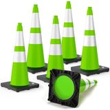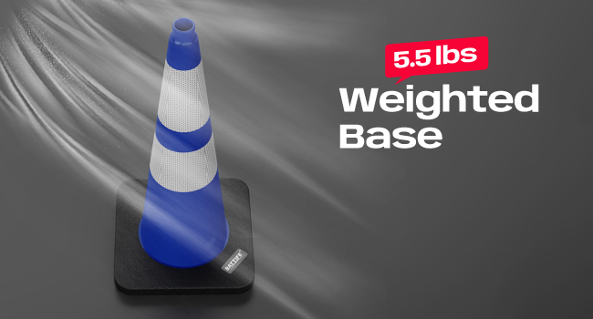 BLACK WEIGHTED BASE: These safety cones are 28 inches tall and feature a heavy duty black rubber base that ensures they stay upright and are not easily knocked over by people or cars. They also remain stable in high winds, heat, direct sunlight and other inclement weather