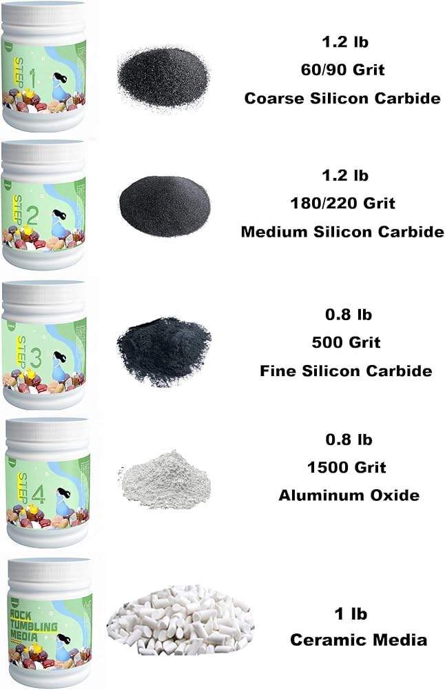 5 LBS Rock Tumbler Grit Set, Rock Tumbler Grit Refill Kit ,4-Steps Supplies for Tumbling and Polishing Stones and Gems