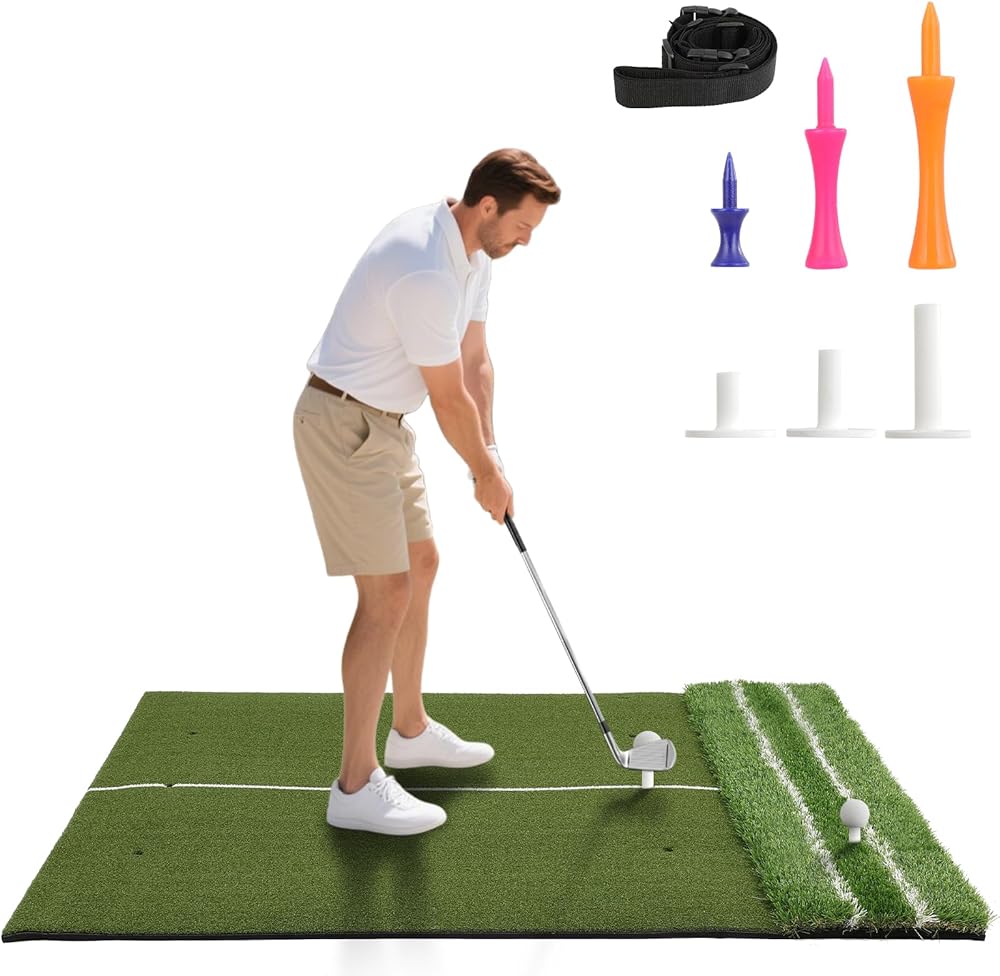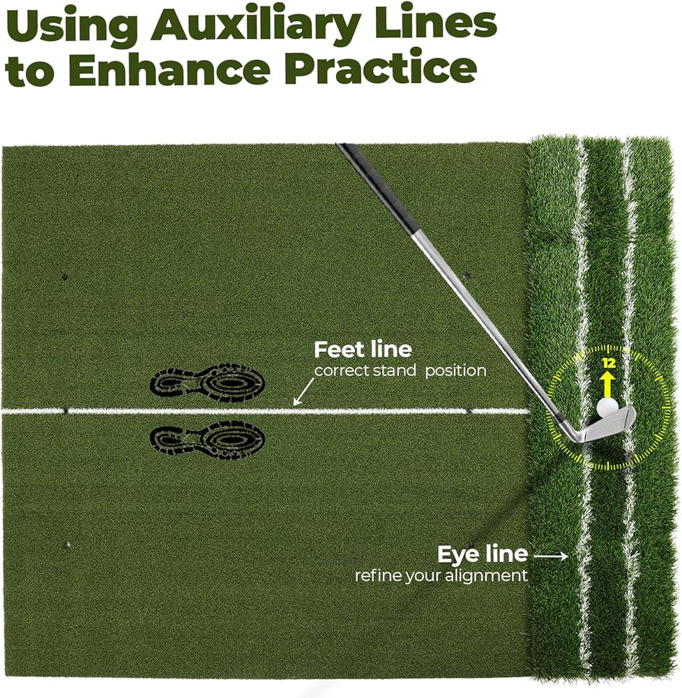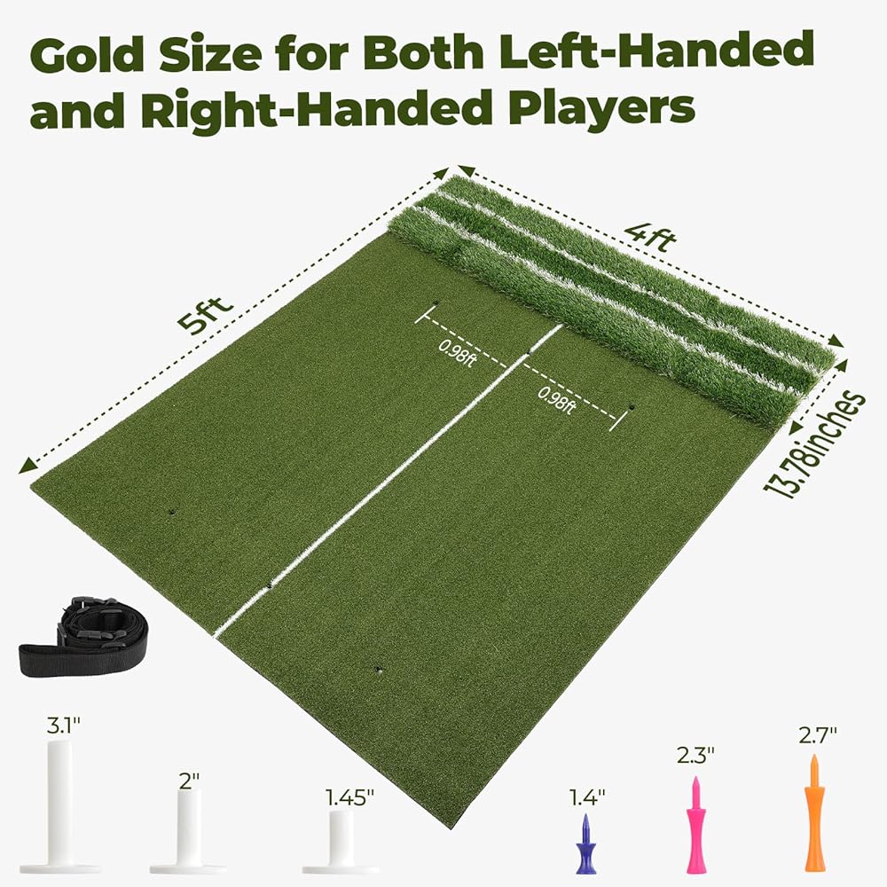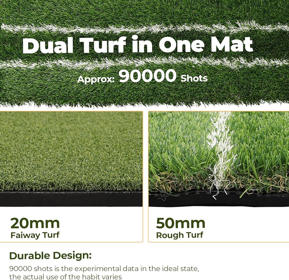 SPACIOUS SPACE: 5x4 feet, the mat provides ample standing room during practice, allowing you to focus on your swing, stance, and footwork in a comfortable space. Perfect for golfers who need a larger space for a more realistic training experience