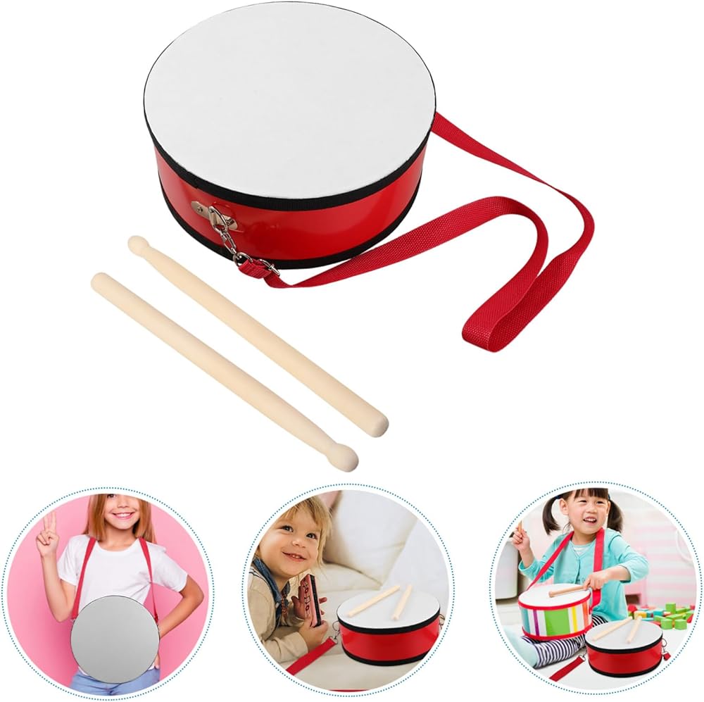 snare drum Its bright red color and sturdy design make it suitable for both education settings and festive performances.drums ornament The included strap ensures secure and comfortable use during activities. instruments This percussion instrument is an for preschoolers and young learners, helping them develop rhythm skills and musical creativity