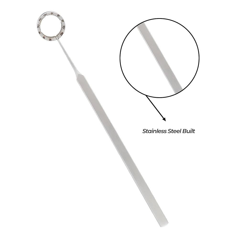 Crafted from premium stainless steel, this degree gauge maintains consistent dimensional accuracy and durability throughout repeated use in laboratory and teaching settings. The extended handle provides balanced control, offering users stable manipulation and precise orientation during alignment exercises.