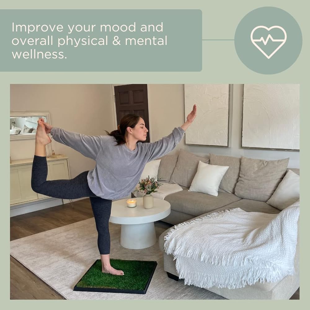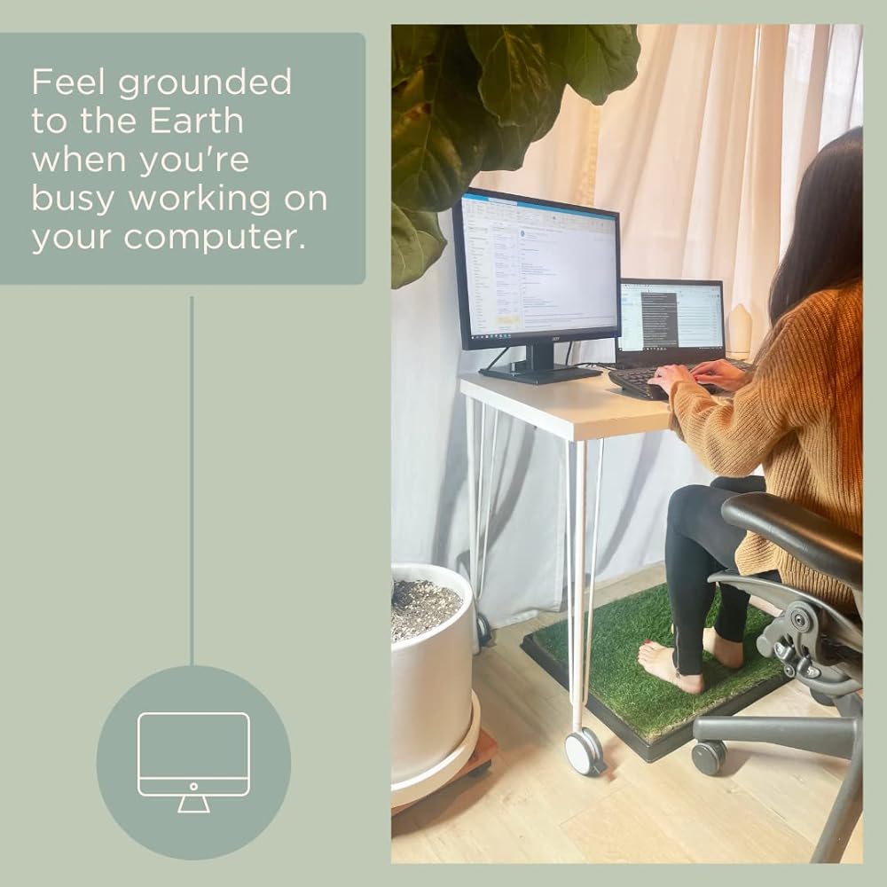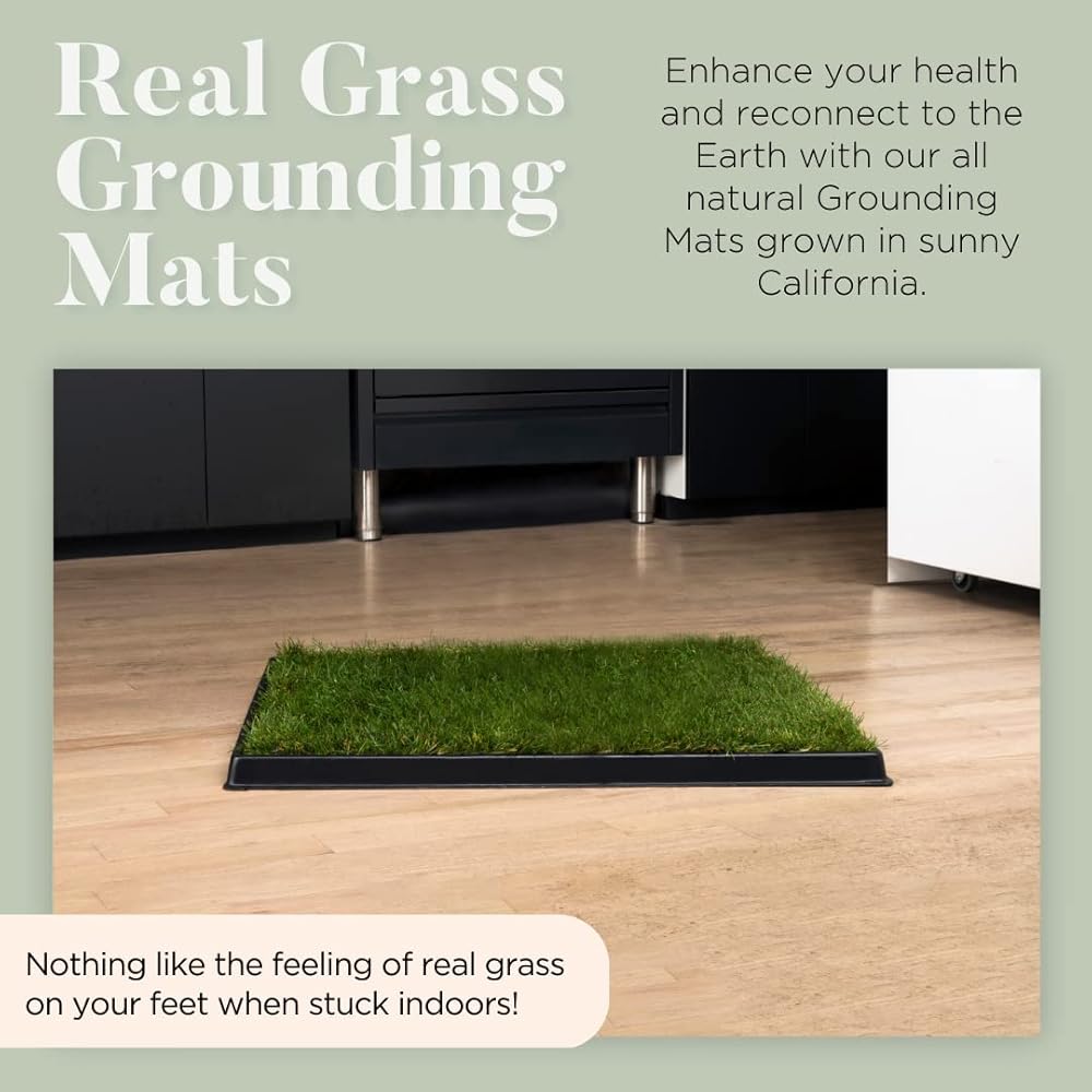 COMPLETE GROUNDING KIT: Includes 1 grounding mat measuring 24 x 20 inches made of real living grass and 1 reusable tray for convenient indoor use and maintenance