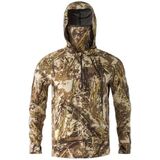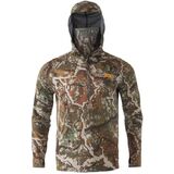 The Approach Hoody is a highly adaptive midlayer designed for comfort and concealment. The hoody's fabric is embedded with 37.5 technology and built with a grid knit backer to promote airflow, control scent, and thermoregulate body heat for the hunter's active or sedentary pursuit of game. For increased concealment, we've integrated the mesh facemask from our best-selling Origin Hoody, which easily and discreetly stows when not in use. Low-profile thumb loops and a deep chest zipper for quick ventilation complete this perfect hoody, optimized for close-range concealment. It helps you evade the sharp eyesight of spring turkeys and educated late-season waterfowl, cupped up and ready to land in your decoy spread.