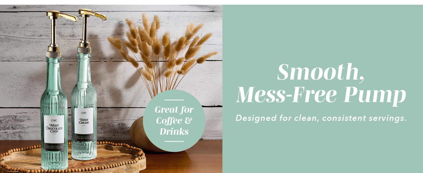 الحجم المثالي: تحتوي كل حاوية شراب زجاجية على 350 مل أو 11.8 أونصة من السائل، وكل ضغطة تمنحك الكمية المثالية من الشراب أو التوابل، وتوزع حوالي نصف ملعقة صغيرة في المرة الواحدة (2 مل).