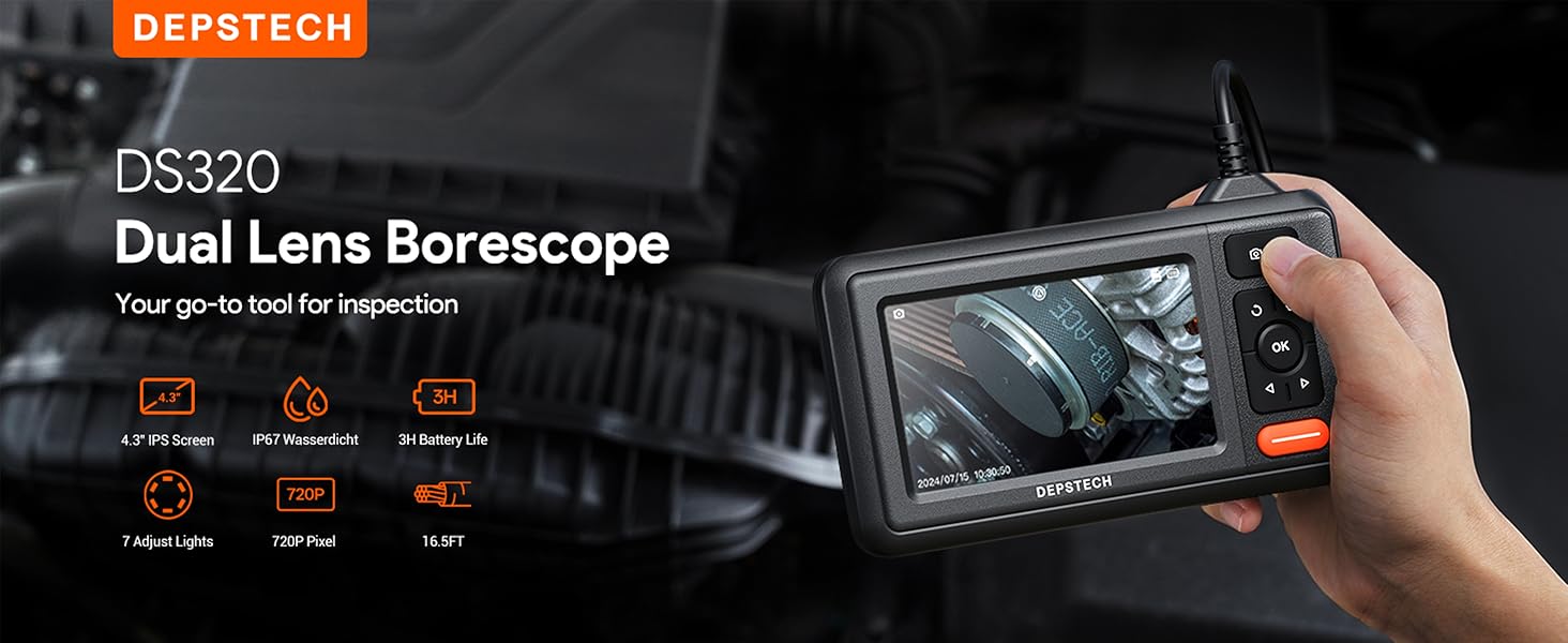 USER-FRIENDLY VERSATILITY: Featuring an ergonomic design and long battery life, the DS320 borescope camera is perfect for on-the-go inspections. Its rugged versatility makes it ideal for automotive, plumbing, construction, and HVAC checks, catering to mechanics, DIYers, and homeowners for detailed inspections anytime, anywhere