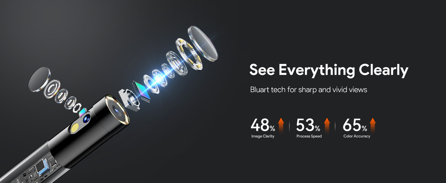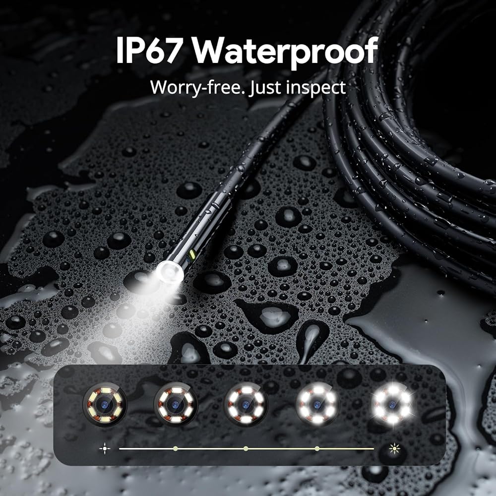 OUTSTANDING IMAGE QUALITY: Benefit from sharp and vivid images with our upgraded CMOS sensor and Bluart 3.0 technology. The borescope camera with 7 adjustable LED lights provide exceptional visibility in low-light conditions, making it easy to conduct thorough inspections in various environments