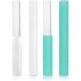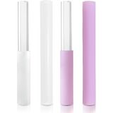 4 Pcs Singing Bowl Mallet Set Includes Solid and Hollow Acrylic Silicone Rubber Striker Mallet for Playing Quartz Crystal Singing Bowls with Bundle Pocket(PurpleGreen)