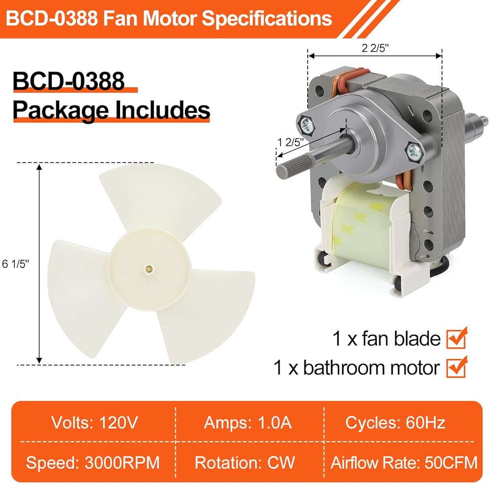 50 CFM Airflow for Effective Ventilation:Designed to deliver strong air movement, this bathroom exhaust fan motor replacement and fan blade combo provides 50 CFM of ventilation power—perfect for bathrooms, laundry rooms, and mobile home spaces.