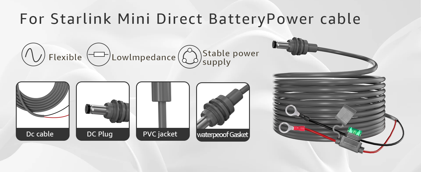 High Quality: 18AWG tinned copper wire with UV/corrosion-resistant coating.Nickel-plated terminals and rubber-sealed fuse box prevent loosening or sparks, DC port has the waterproof and easy plug and unplug functions to connect for starlink mini, Cord length: 9.8 FT