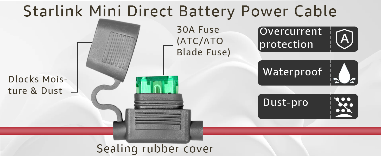 Use Safety: Designed with safety in mind this for starlink mini DC power cable design with 30A fuse equipped with a built-in ATC/ATO blade fuse that guards against surges and shorts,ensuring long-term device protection