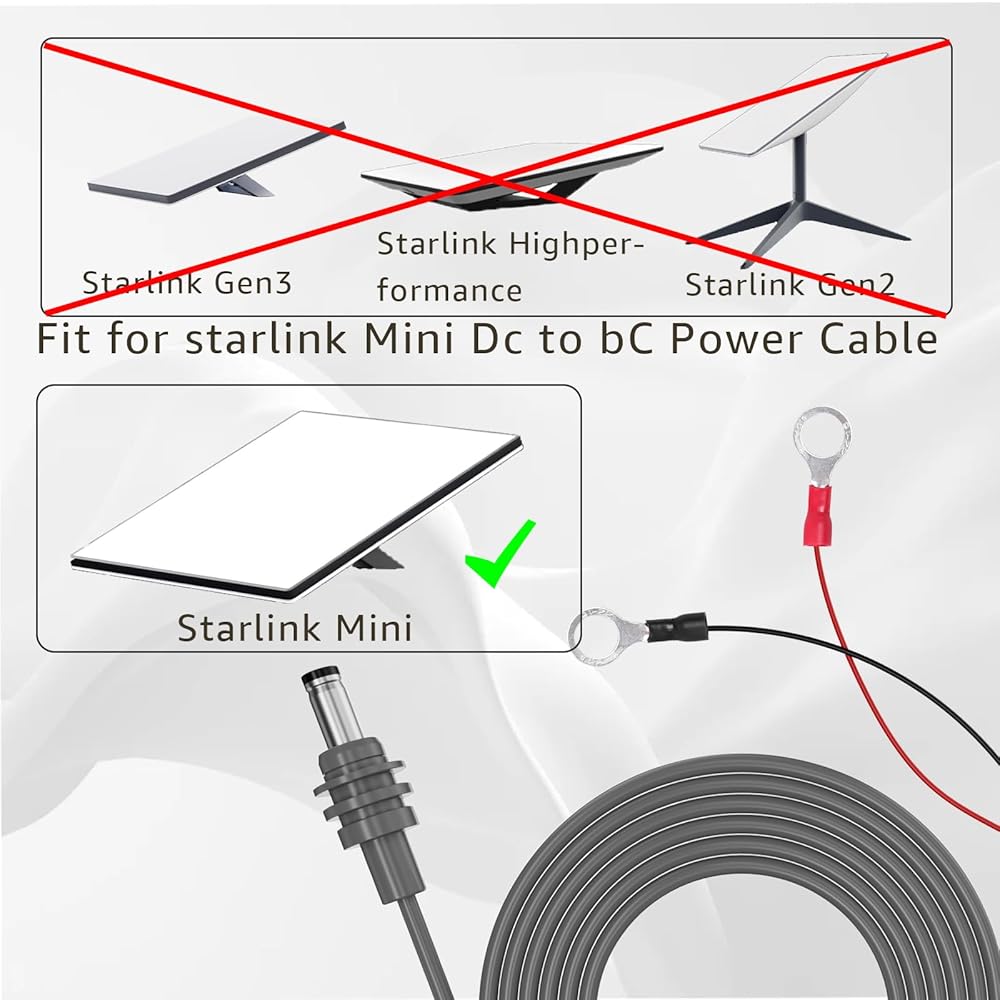 Direct Battery Connection: Specifically designed for Starlink Mini, designed with O-ring terminals for secure attachment to vehicle battery posts (12V/24V), delivering stable power to without adapters. Compatible with a wide range of 12V vehicle power systems—ideal for RVs, vans,trucks, and outdoor