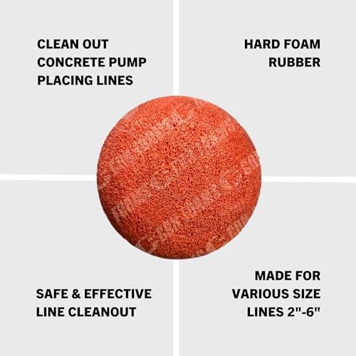 Con Forms hard pump line cleanout ball designed for safe & effective cleanout of your concrete pumping line. Consists of hard foam rubber for post-pumping mix removal. Made for 6" ID (DN150) size systems. Comes in a case of 15.