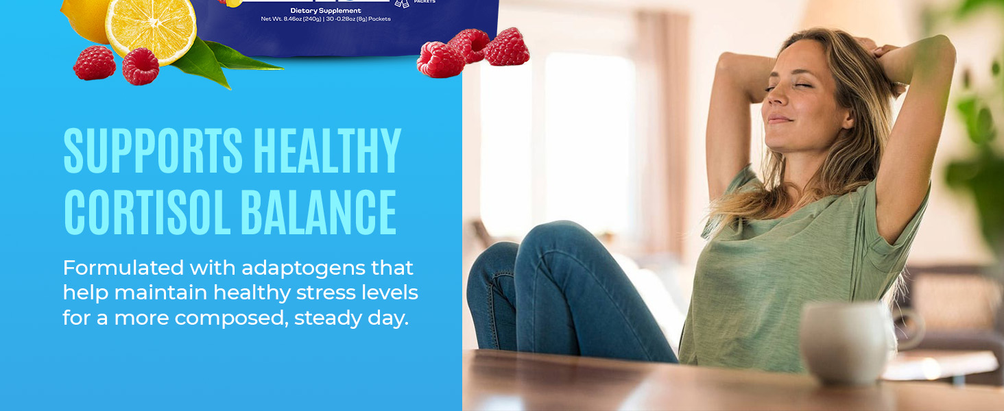 Delicious & Convenient Daily SupportRefreshing raspberry lemonade flavor that mixes easily with water for a fizzy, guilt-free drink. Each container includes 30 servings for consistent daily stress management and wellness support.