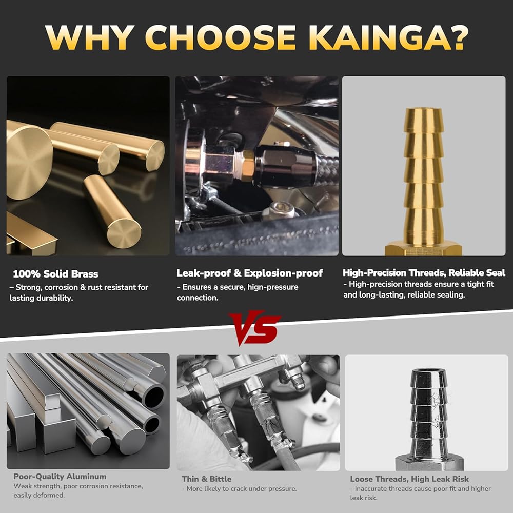 KAINGA Hose Fitting is designed for fuel, gas, water, air, refrigeration, hydraulic systems and vacuum applications, allowing for connections with soft tubes, such as PVC, PU, rubber hose, or tubing.