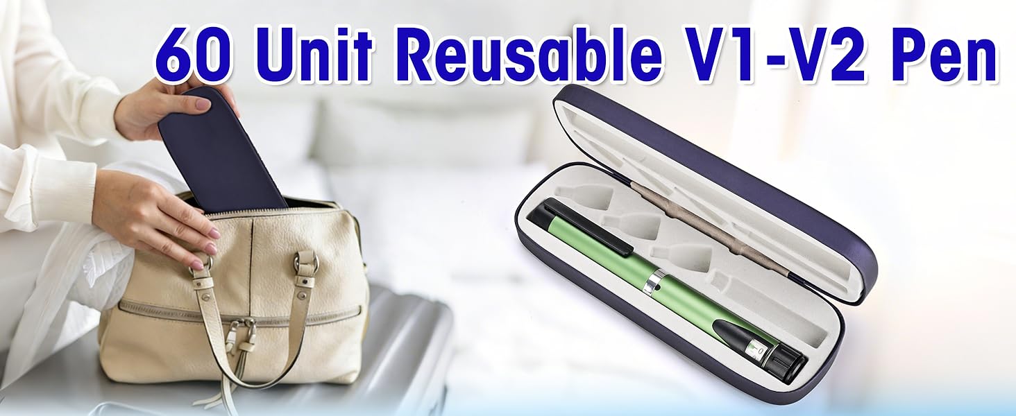 【V2 Pen Peptide Capacity】: 60 unit reusable peptide pen, easy to use, includes a protective case that easily fits into storage boxes or travel kits