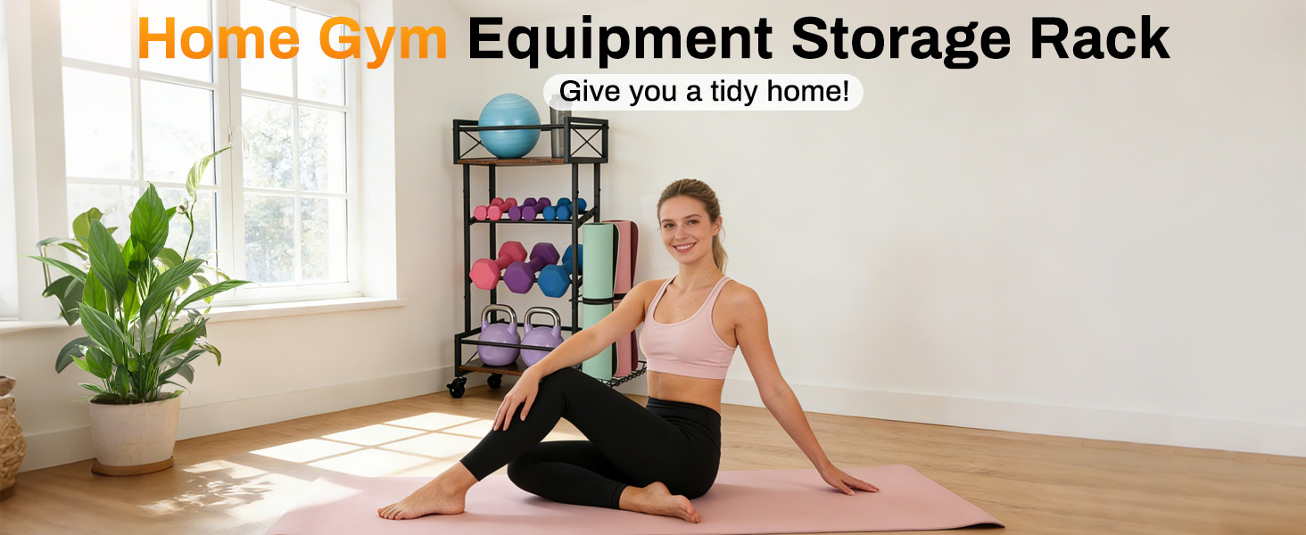 MULTI-FUNCTION GYM ORGANIZER: Perfectly stores yoga mats, dumbbells, kettlebells, and accessories, keeping your home gym storage tidy and all gear within easy reach.