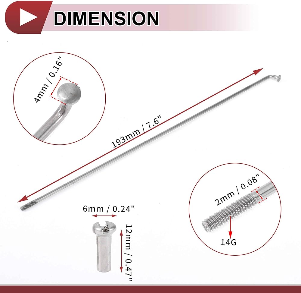سهولة التركيب: عند التثبيت، يتم تركيب المتحدثين المتجاورين على أسطوانة العجلة في الفتحتين الأولى والثالثة في نفس الاتجاه على الحافة (مكبران متباعدان بفتحة واحدة). يعتمد طول مكبر الدراجة على الحافة والمحور وطريقة التضفير. يرجى قياس المتحدث القديم وتأكيد الحجم قبل تقديم الطلب. لمطابقة محاذاة العجلة الخاصة بك، يمكنك التقاط صورة قبل التثبيت.
