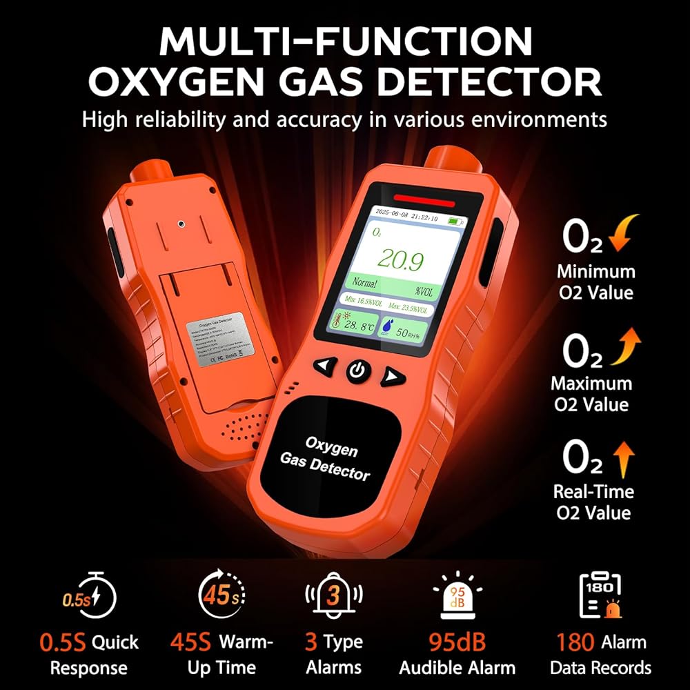 【Fast Response & Accurate】Our oxygen monitor uses a high-precision electrochemical sensor for real-time 0.5 second oxygen gas detection from 0-30% range with +/-5% accuracy. Featuring 0.1% resolution, the O2 monitor enables accurate detection of low-level oxygen gas concentrations.