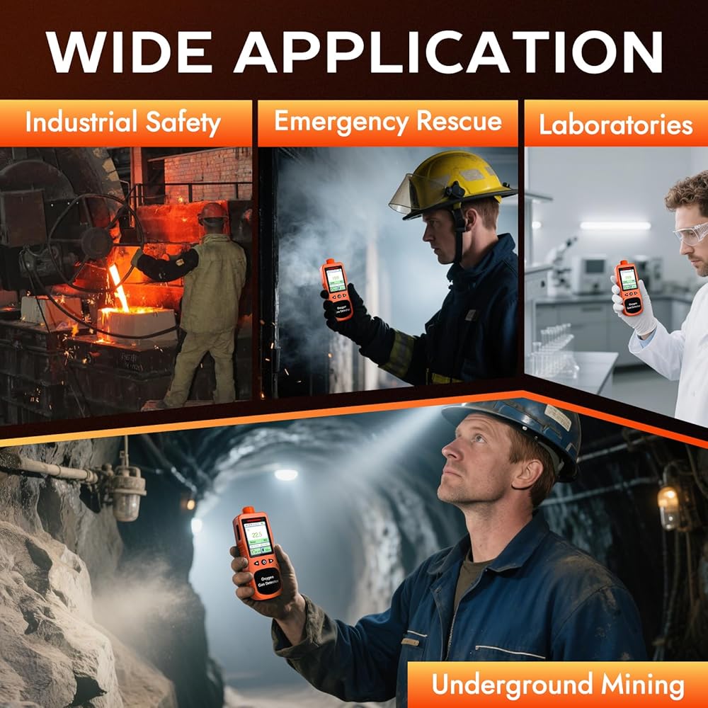 【Factory-Calibrated & Portable】This portable Oxygen Analyzer comes calibrated from the factory, with 2-Year sensor lifespan. Widely used in industrial oxygen safety, firefighting & emergency rescue, ambient air measurements, mining, underground work and labs.