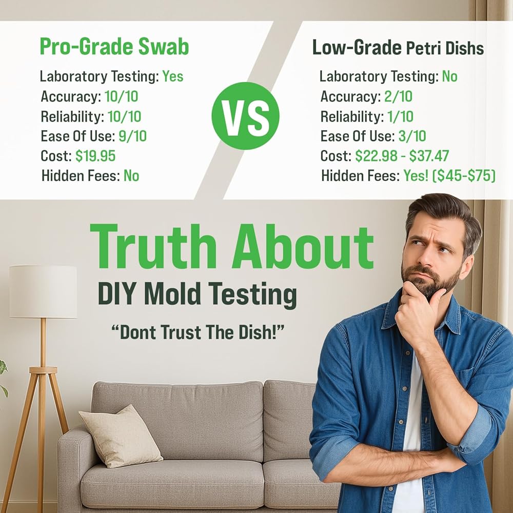 𝗠𝗮𝗱𝗲 𝗳𝗼𝗿 𝗛𝗼𝗺𝗲 𝗨𝘀𝗲: Designed with homeowners and renters in mind, this kit is suitable for checking areas like bathrooms, kitchens, basements, or bedrooms. An easy way to check for potential mold without waiting for professional help.