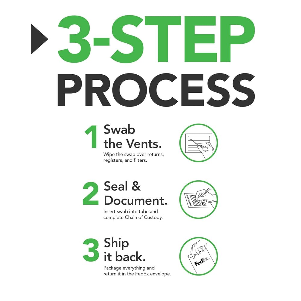 𝗔𝗹𝗹-𝗜𝗻-𝗢𝗻𝗲 𝗞𝗶𝘁: No need to search for extra items, everything you need is inside the box. The kit includes swab, gloves, labeled bag, and step-by-step instructions, making the process quick and stress-free.