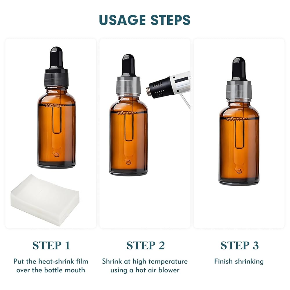 [Easy to Use]: Simply attach the shrink band to the dropper bottle, then use a heat gun, heat tunnel or hair dryer to evenly shrink and seal the bag until it is enclosed