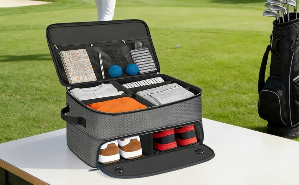 Organized golf accessory storage: enjoy a neat trunk; with a three-zone double-pocket design; multiple compartments guarantee easy access and proper organization for golf gear