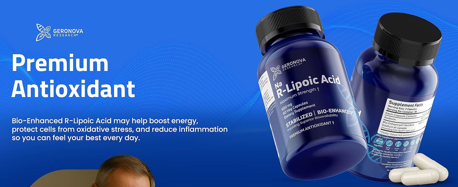 ENHANCED ABSORPTION - GeroNova Bio-Enhanced R-Lipoic Acid is the most absorbable form of Lipoic Acid as it's the exact type the body requires, making it 40x more bioavailable and more potent than typical Lipoic Acid