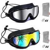【Color 2 Packs for All Summer】 Cool design and vibrant colos make swim time much better.Crafted with shatterproof polycarbonate lenses and strong bungee strap, these goggles are built to last. Whether at backyard pools, beaches, or swim teams, these goggles are ready for any adventure.Each pair includes a portable bag for easy storage and transport, keeping goggles protected and clean