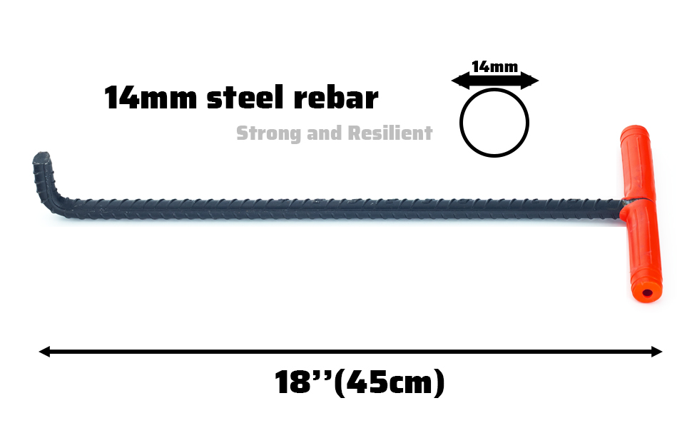 Heavy Duty 18''(45cm) Long T Shape Lifting Reaching Hook for Lifting Pulling Moving Manhole Covers, Storm Drains, Septic Tank Lids Door Pointed Head