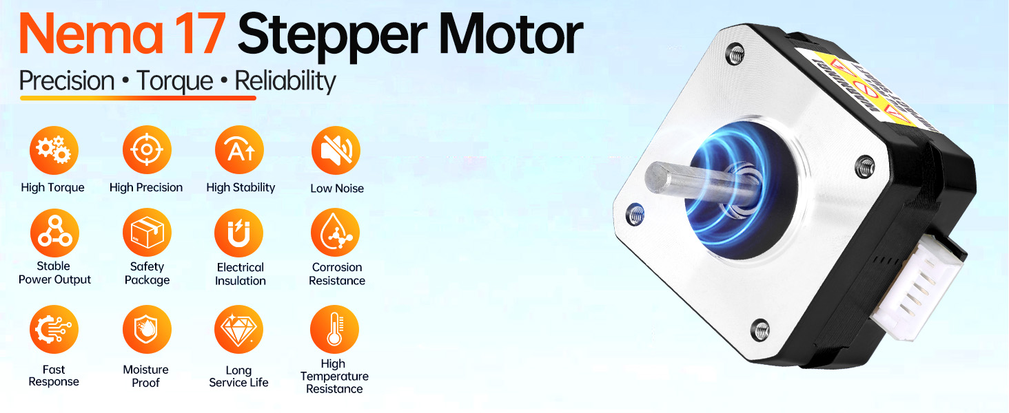 Elevate Your Equipment: Choose our upgraded Nema 17 Step Motor for increased holding torque and remarkably quiet function. Re-engineered steel cores and precision windings minimize noise, contributing to smoother overall system operation with less ambient disruption.