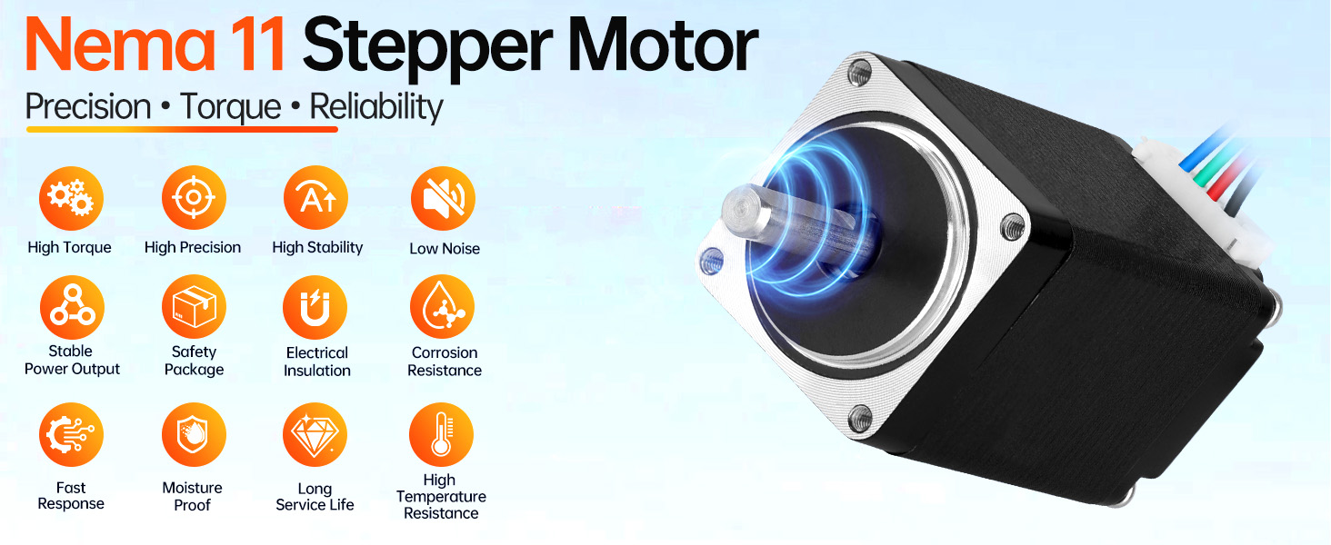 Advanced Steel Construction: Our upgraded Nema 11 Step Motor delivers up to 20% greater holding torque than typical models. Featuring enhanced steel cores and refined windings, it operates with noticeably reduced noise for smoother, less disruptive machine performance.