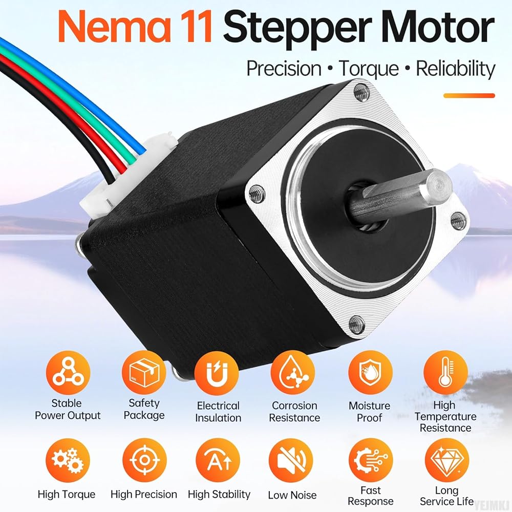 Nema 11 Stepper Motor 2 Phase 1.8° 13Ncm(18.41oz·in) High Torque Bipolar 45mm 7.3Ω 0.8A 4-Wire Shaft 20mm φ5mm 28 Stepper Motor Cable 1M for 3D Printer DIY Robot CNC Machine
