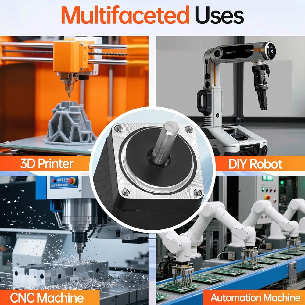 Important Considerations: Faster speeds lead to lower torque; the recommended operating range is 0–600 RPM. Lower current reduces torque and temperature rise, while lower voltage decreases torque (recommended range: 12–24V DC). The 28mm Stepper Motor is used in various applications like 3D printers, DIY robots, and CNC machines, offering a compact design and high torque for demanding tasks.