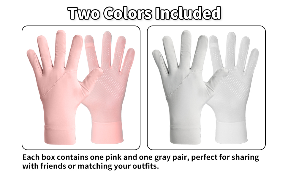 【Generous Quantity】: Each box contains 2 pairs of UV gloves—one pink and one gray—with attractive color combinations, perfect for summer outdoor use and easy to share with friends.