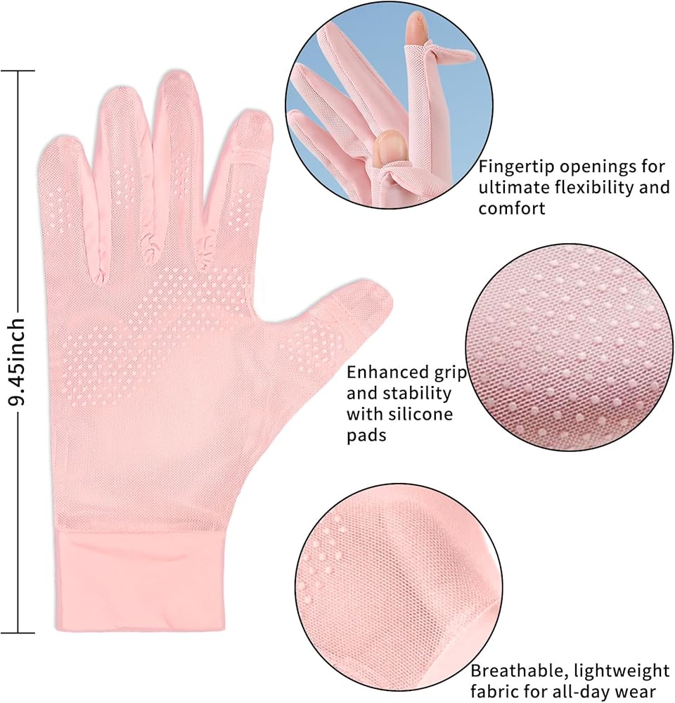 【Soft and Breathable】: Made from high-quality ice silk, these thin gloves are cool, breathable, and quick-drying, keeping your hands comfortable even during heavy sweating. Perfect as UV gloves for gel manicures or everyday wear.