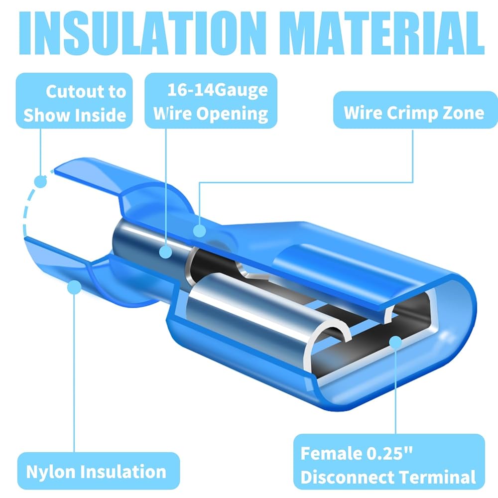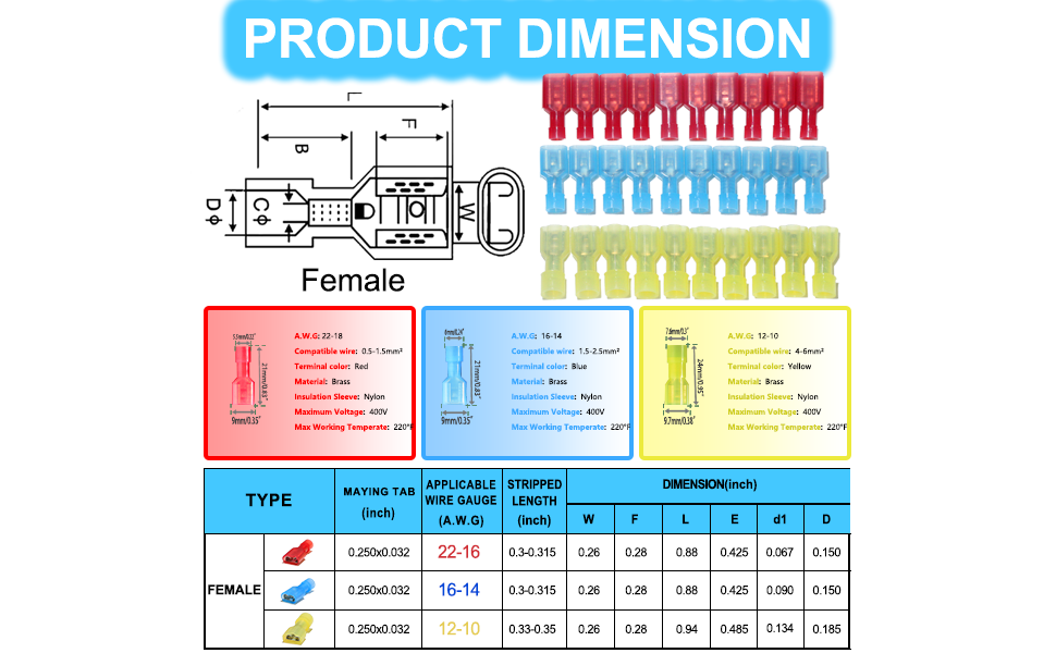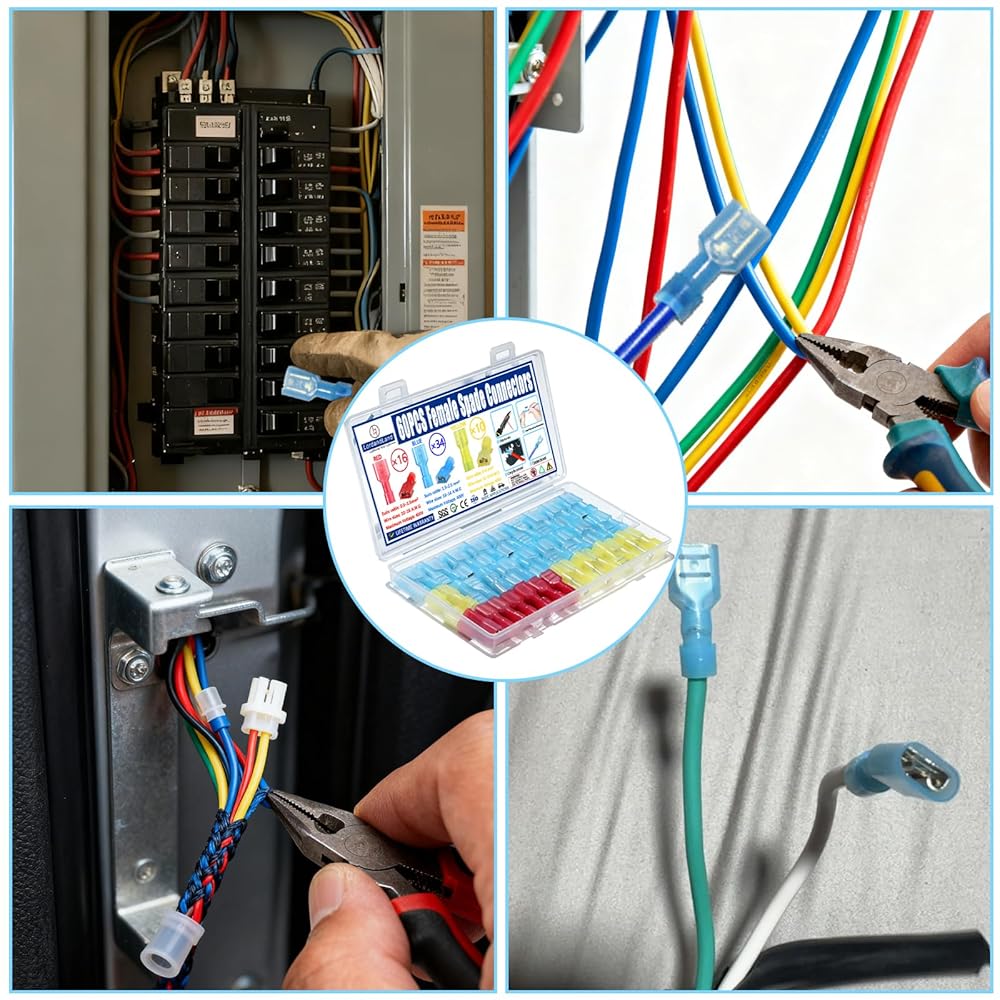 [Quick Disconnect] : With 60Pcs nylon female spade connectors, male/female spade connectors can be easily connected and disconnected, suitable for frequent connections.