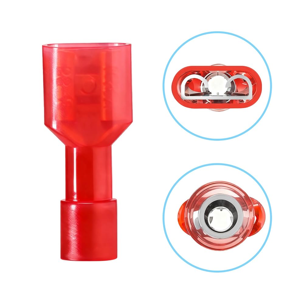 [Premium Material] : The spade quick connector is made of outstanding tinned red copper material, which has good conductivity and corrosion resistance, with a flexible nylon protective sleeve to prevent corrosion, oxidation and short circuit, durable for long time use.