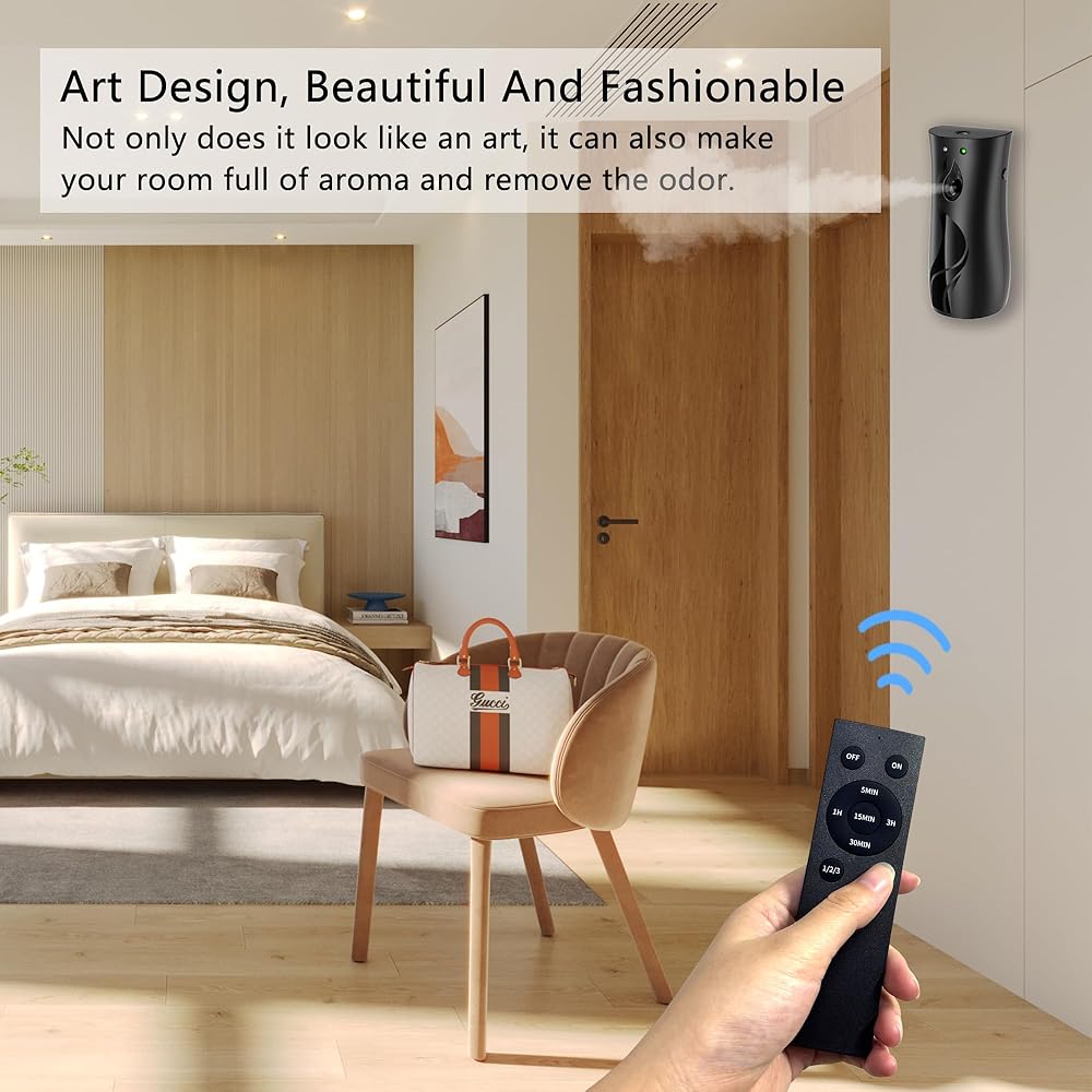 Batteries Operated Aerosol Sprayer - the scent spray dispenser requires 2 pcs AA batteries (NOT INCLUDED),the remote requires 2pcs AAA batteries (NOT INCLUDED) to operate to bring continuous and long-lasting fragrance into your bedroom, guestroom, beauty center, gym and so on.