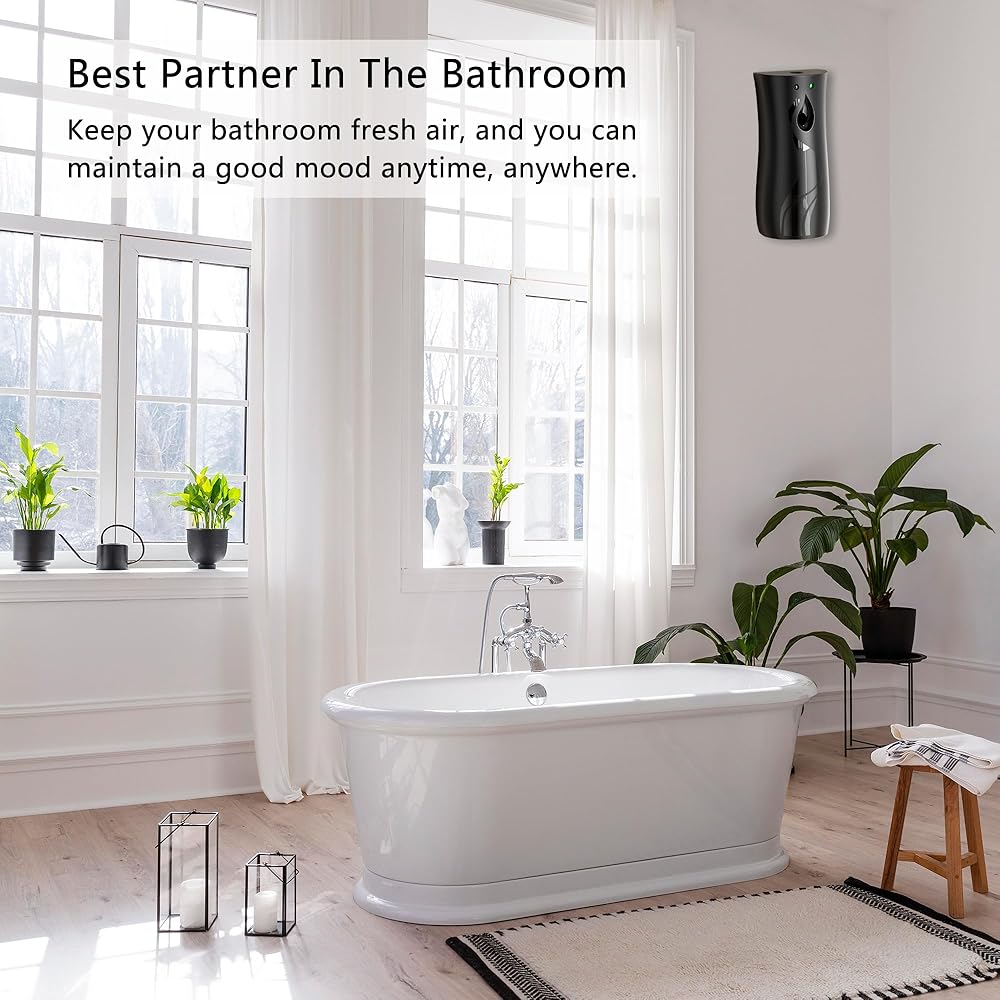 Wall Mounted or Free-Standing Use – Install this wall mounted air freshener using damage-free adhesive stickers or durable screws, or simply place it on a countertop. Ideal for bathrooms, kitchens, living rooms, and as an automatic room spray for offices.