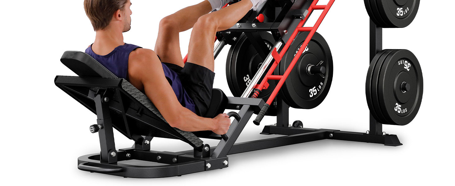 Upgraded Configuration: This leg press machine is made of heavy-duty, high-strength steel for exceptional durability and stability. The leg press machines are equipped with 4 weight plate storage holders, which not only greatly increases the stability but also saves training space. Besides, the weight carriage is compatible with 2'' plates and supports a maximum load of 1200 lbs. It fits users from 5' to 6'6''