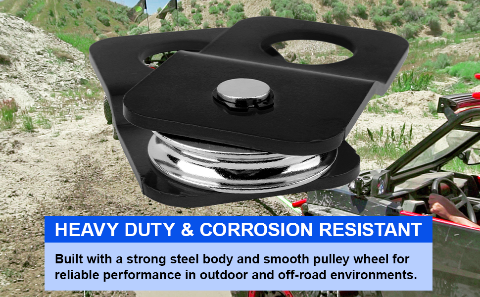 HEAVY DUTY & CORROSION RESISTANT – Built with a strong steel body and smooth pulley wheel for reliable performance in outdoor and off-road environments.