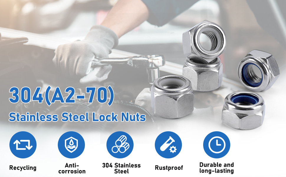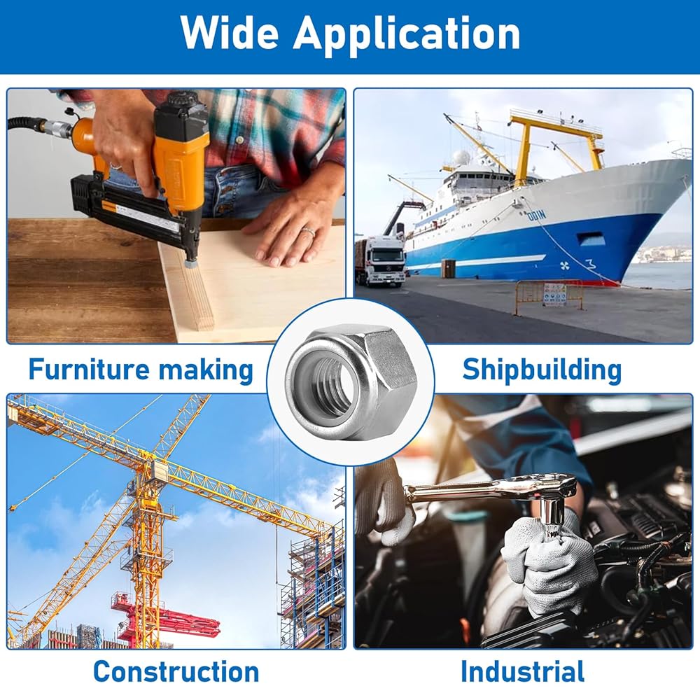 - 【Vibration-Proof Locking】 – Nylon insert creates friction resistance to prevent loosening under motion, ideal for automotive/machinery applications