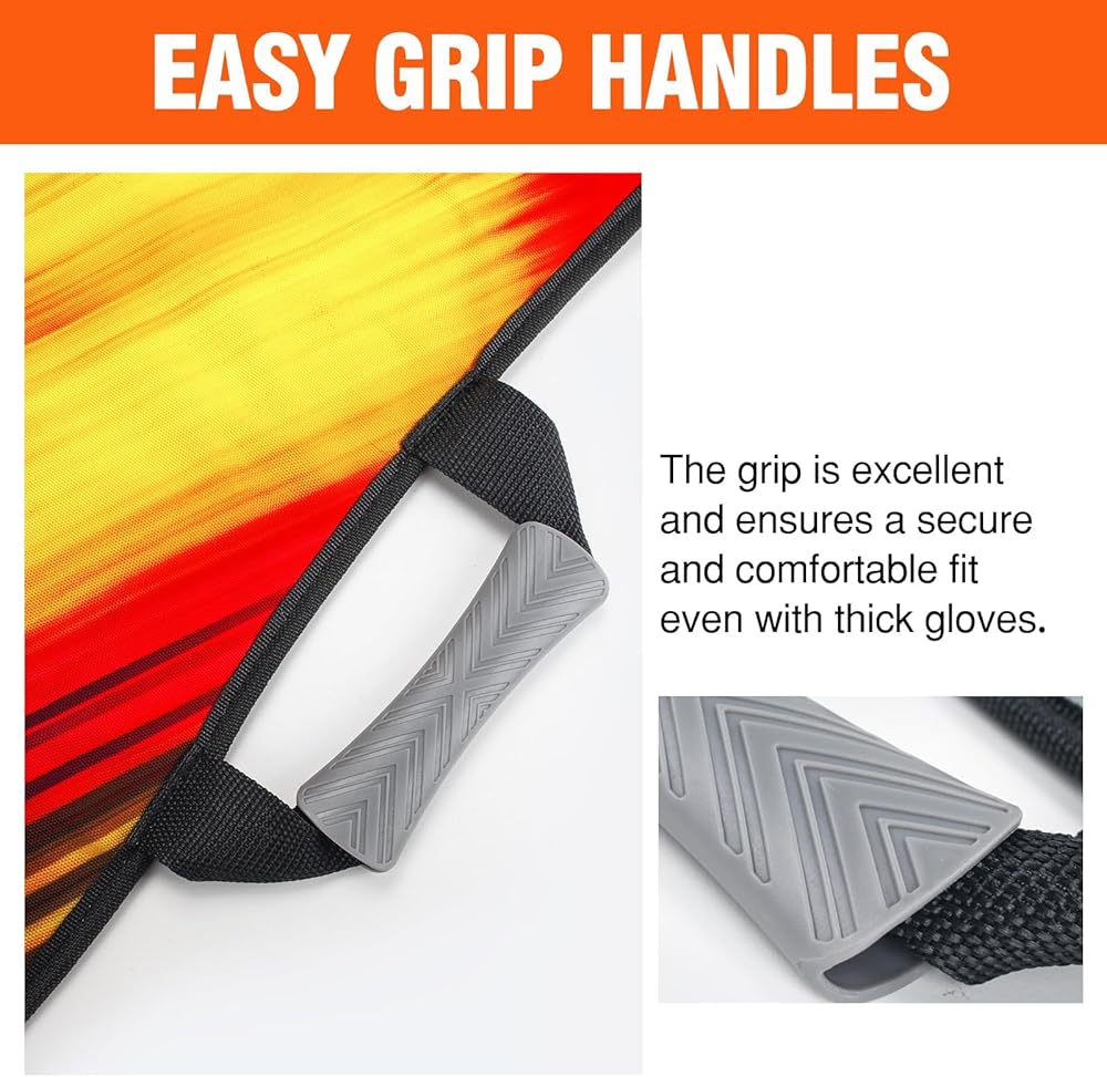 ️𝗚𝗥𝗜𝗣 𝗪𝗜𝗧𝗛 𝗖𝗢𝗡𝗙𝗜𝗗𝗘𝗡𝗖𝗘, 𝗦𝗟𝗘𝗗 𝗪𝗜𝗧𝗛 𝗦𝗔𝗙𝗘𝗧𝗬: Safety and comfort meet in our sled's two sturdy, soft handles. Molded to fit your hands perfectly, they provide a firm grip, even with mittens on, preventing slips. In addition,The interior of the foldable sled is padded with soft EPE materials designed to provide excellent shock absorption while sliding to enhance your sledding experience