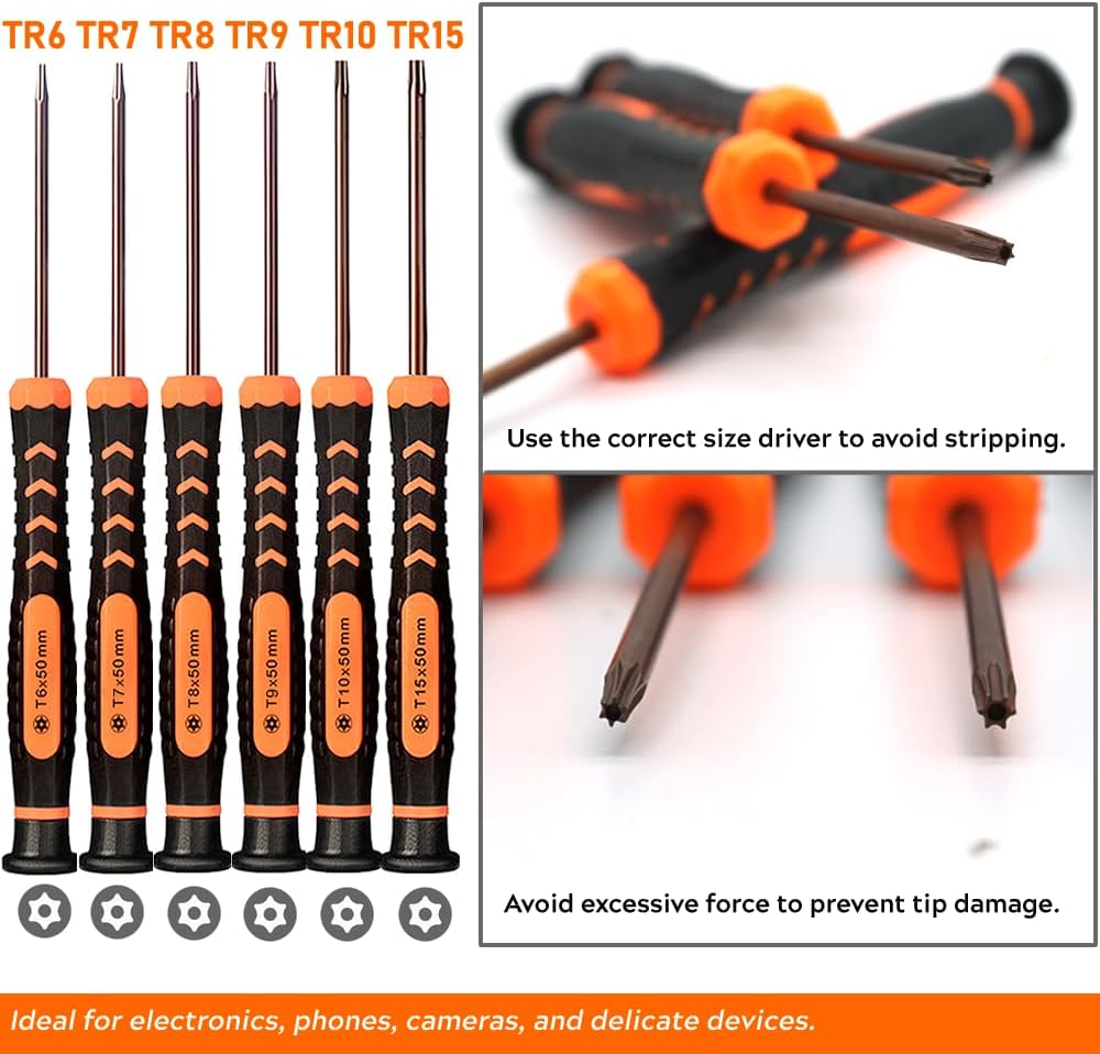 A must-have tool kit for Apple MacBook, iPhone, Xbox controller, PS3, PS4, laptops, computers, game consoles, Mac mini, pocket knife, Ring doorbell, dishwashers, shavers, routers, and other electronic devices with torx screws.