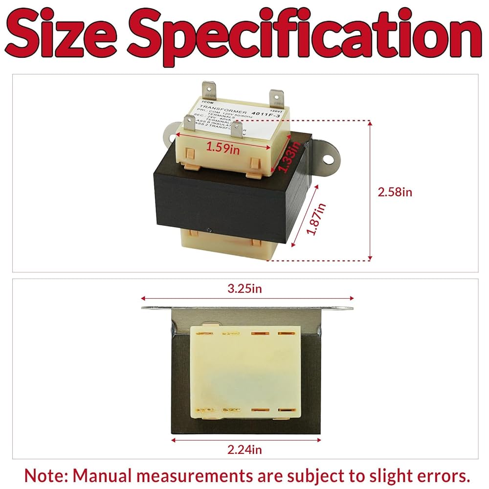 4011F-3 120V to 24V Transformer: This 40VA furnace transformer is a replacement for other HVAC systems requiring 40VA/24V power conversion, compatible with Tr-ane furnaces, Ge-mline GT446, Su-pco SXT105, GT446 SXT105 TRR-1729 TRR1729 TRR01729 TRR00784 TRR-0784 TRR0784 TRR01816 TRR-1816 TRR-1816 TRR-1755 TRR01755 TRR1755 C340041PO5 Basler Electric BE25214011 G06A 1124