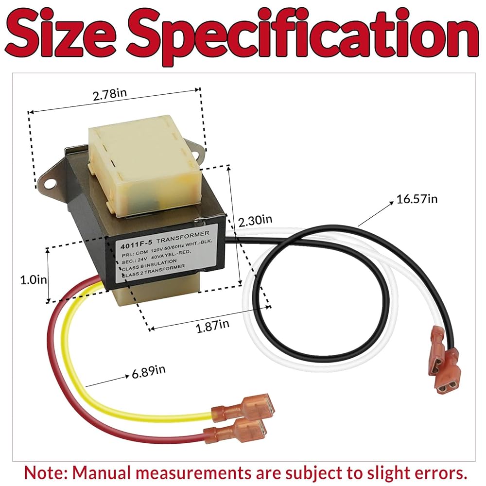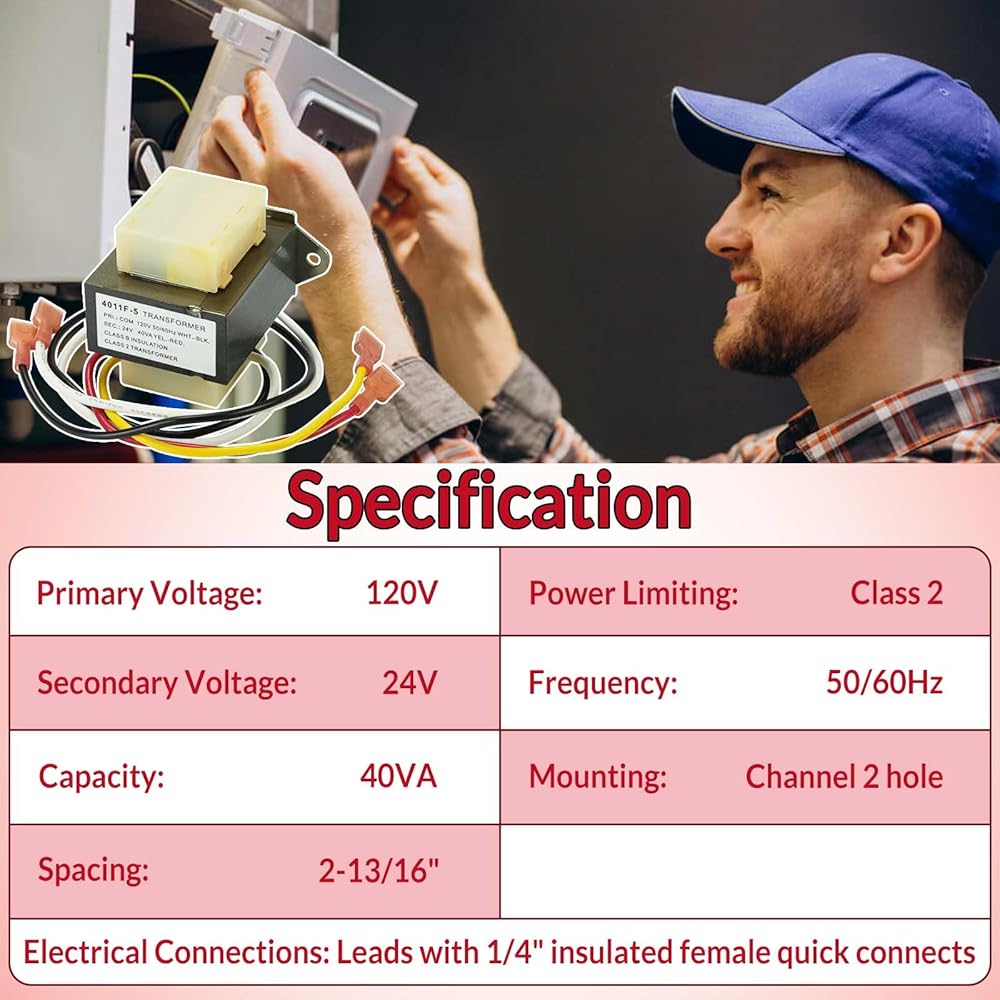 24V Transformer: The 4011F-5 transformer converts 120V AC input into a stable 24V AC output, making it suitable for use in a wide range of HVAC equipment including Rheem-Ruud furnaces and other control and power needs