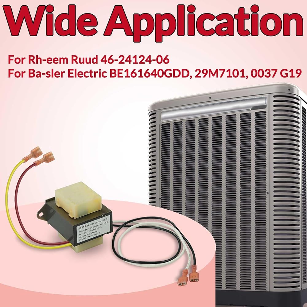 46-24124-06 4011F-5 HVAC Transformer 120V to 24V 40VA for Rh-eem Basler Electric Furnaces HVAG Equipment BE161640GDD 29M7101 0037 G19 with Channel 2 Hole Mount