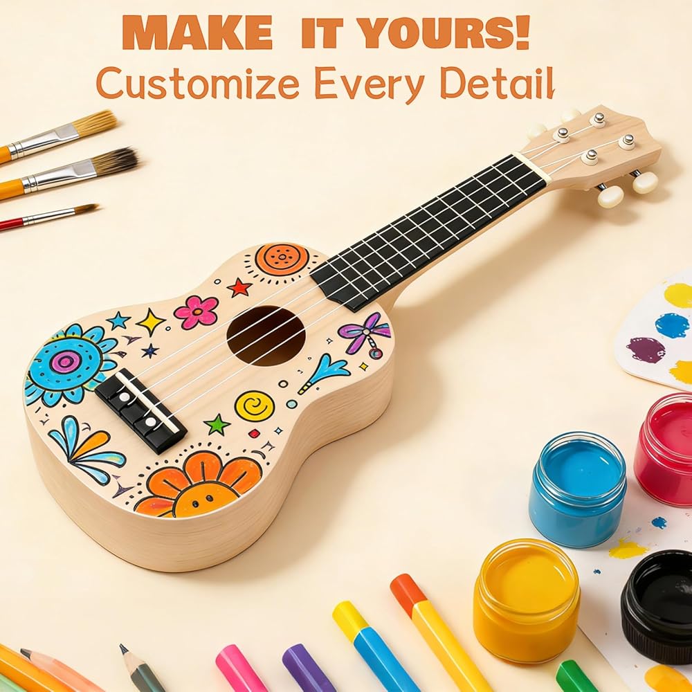 DIY Fun: Decorate, draw, and customize your ukulele however you like to create a one-of-a-kind soprano ukelele. More than just a musical tool, it's a handmade work of art that captures your special moments