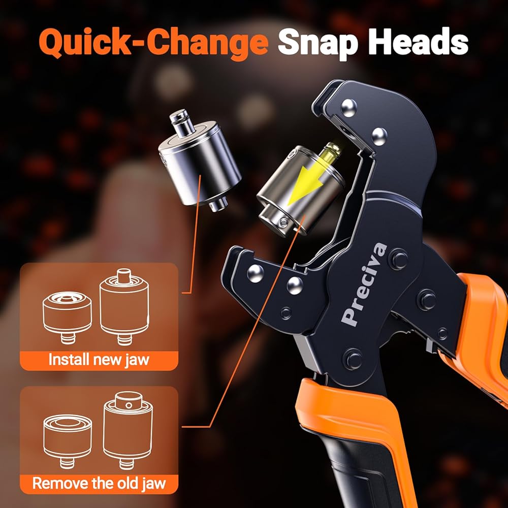 Interchangeable Jaws Design: Grommet tool kit with interchangeable 1/2" 1/4" 5/16"and 3/8" jaws provides the flexibility to install four different sizes of grommets.